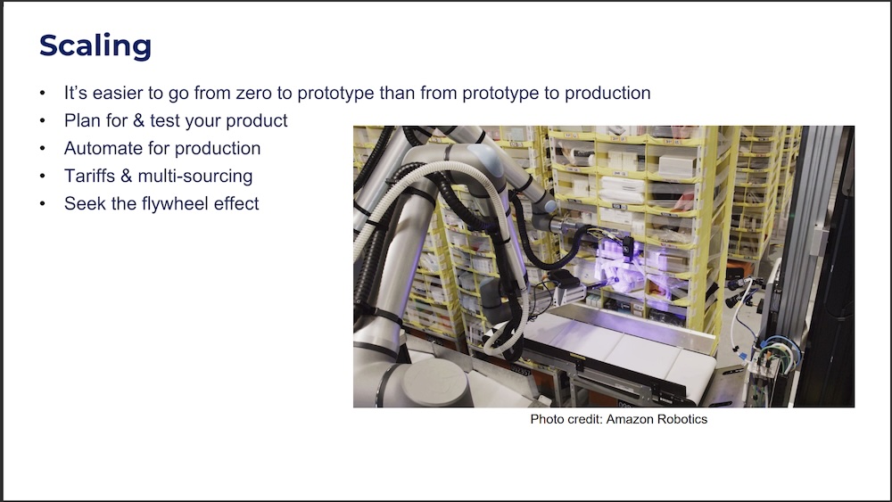 It’s easier to go from zero to prototype than from prototype to production: Even with initial success, businesses underestimate the effort it takes from building tens of units to hundreds/thousands. Design for manufacturing, assembly, service, test, and safety along with creating properly dimensioned GD&T production drawings, writing work instructions, qualifying manufacturing partners, and other New Product Introduction (NPI) activities take a lot of time and cost. One company said that the prototyping stage over 3 years cost less than 1 year of trying to get to production ramp. The design is not complete with the proof-of-concept prototype. That’s when the real work begins. Another one said that the cash hit for ramping up inventory was much higher than they expected. These are the types of costs that can sink a company and cause them to fail at scale, even after they have wonderfully functional prototypes and a good market fit.